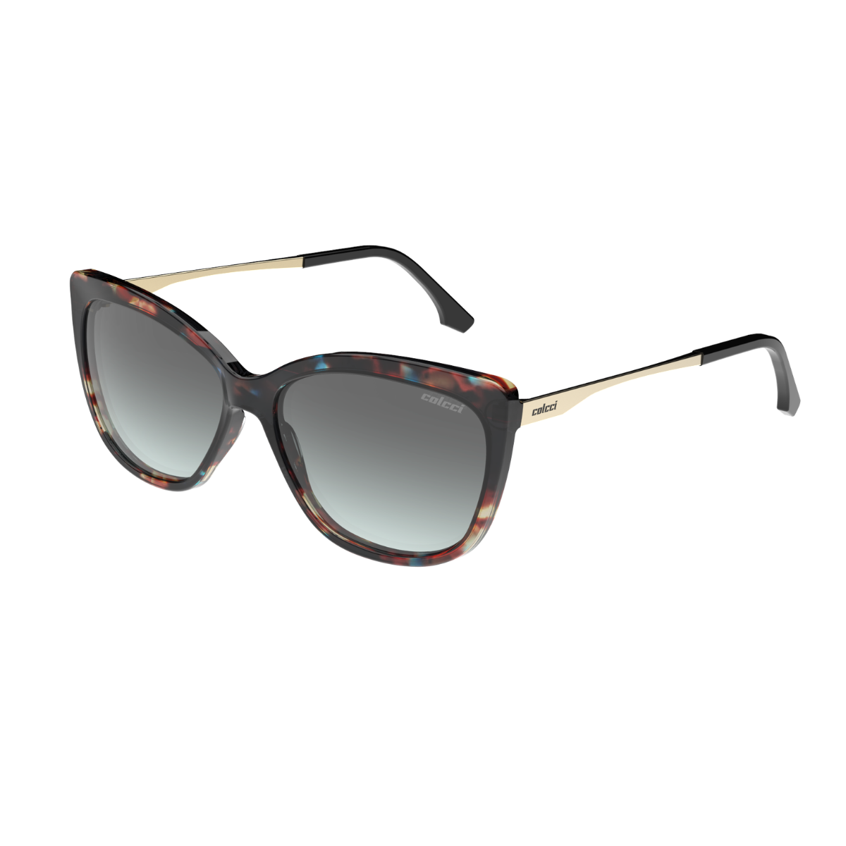 Óculos Feminino Colcci Laís Demi Marrom e Turquesa Brilho Lente Cinza Degradê.
